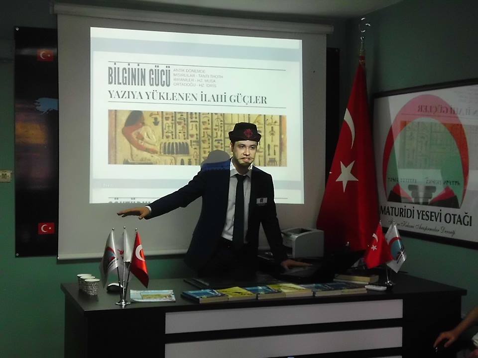 Maturidi Yesevi Otağı’na vardık. Katılımcılardan, dernek üyelerinden çok önce geldiğimiz için bir yandan bilgisayarımızı kuruyor, bir yandan çayımızı yudumluyor, bir yandan da yéñi gelenlerle ayaküstü söyleşiyoruz. Dérken sunumumuz başladı. Önce Ersagun bir giriş konuşması yaptı, ardından sözü Bilal’e bıraktı, o da sözü Fatih’e vérdi. Güzel bir giriş yaptı, ilgiyi kendisinde toplamasını bilmişti. Bu, Fatih için yépyéñi bir deneyimdi; ilk kéz tüm sunumu kendisi yapıyordu. Daha önce Cafer’le ortak sunumları olmuştu ancak tek başına ilk deneyimdi. Başarılı bir biçimde sunumu soñlandırdı. Hatta kendisiyle barışık bir biçimde Radlof ile ilgili bölüme geldiğinde, dün géceki sayıklama olayına değinerek katılımcıları güldürerek ortamı yumuşatması da bildi. Yine de buşkusu görmeye değerdi. Sunumuñ ardından Türk Dili Derneği olarak bir de kapanış konuşması gerekiyordu; bunu ben üstlendim. Böylece étkinliğimizdeki ilk sunum soñ buldu.